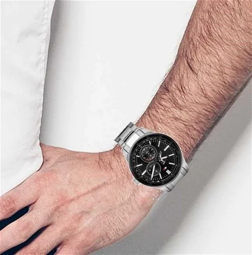 ساعة تومي هيلفيغر للرجال اصلية موديل Austin 1791639 لون اسود واستيك معدن ستانلس لون فضي.