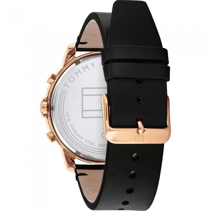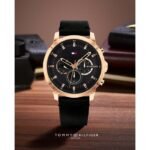 ساعة تومي هيلفيغر للرجال اصلية موديل (كوير) Cuir 1791798 لون اسود واستيك جلد طبيعي لون اسود