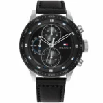 ساعة تومي هيلفيغر Tommy Hilfiger للرجال أصلية موديل (ترينت) 1791810 Trent لون اسود و اوستيك جلد طبيعي لون اسود.