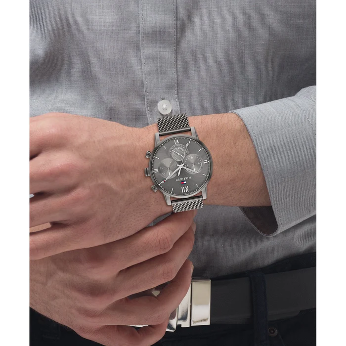 ساعه تومي هيلفيغر اصليه للرجال موديل 1791882 بلون رمادي واوستيك معدن لون رمادي.