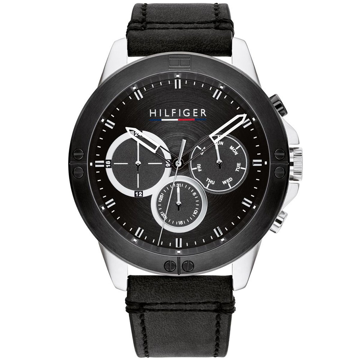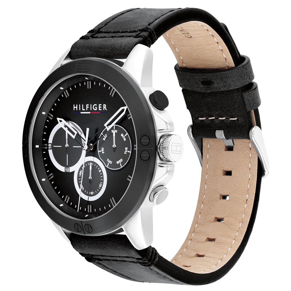 ساعة تومي هيلفيغر للرجال أصلية موديل (هاري) Harley 1791894 لون اسود و استيك جلد طبيعي لون اسود.