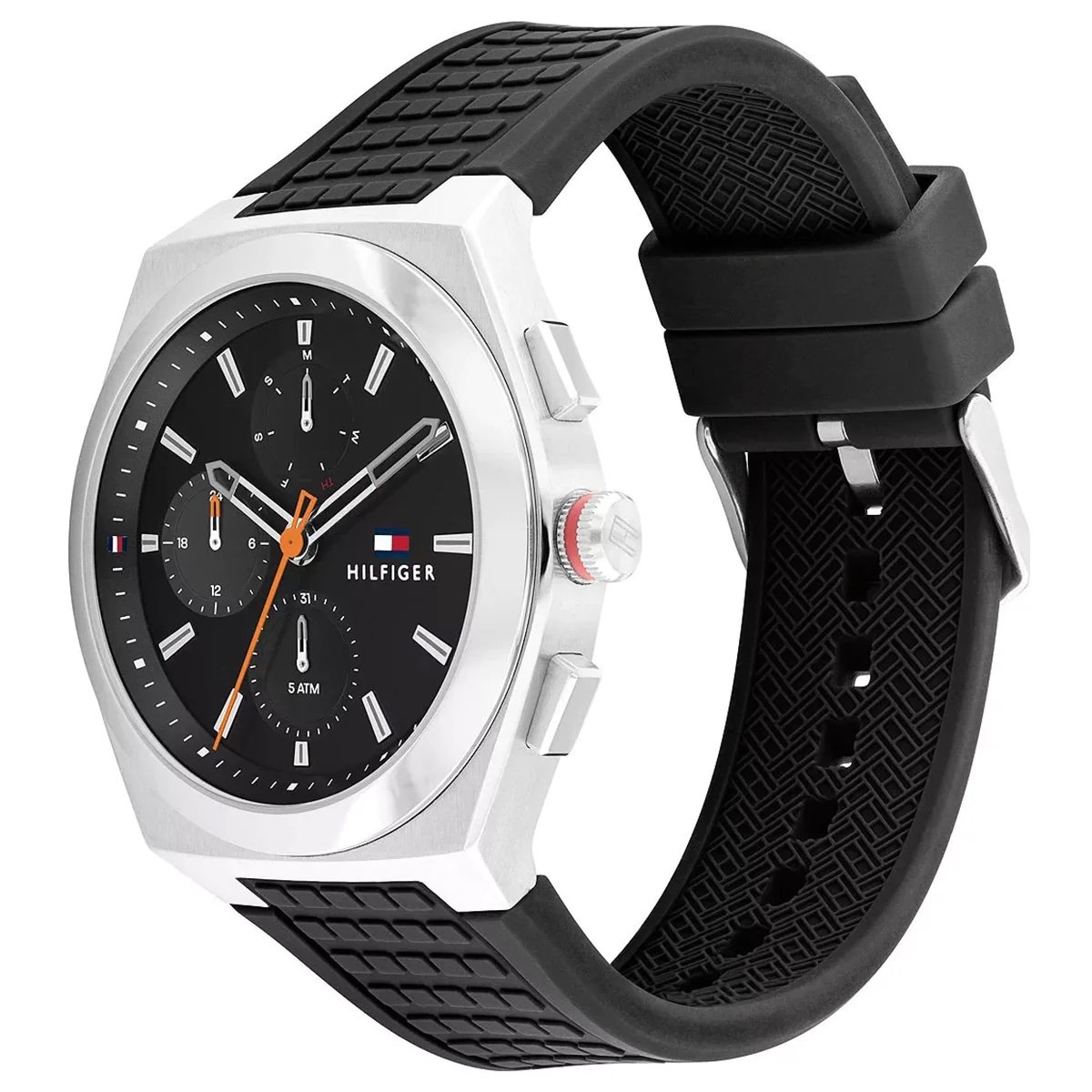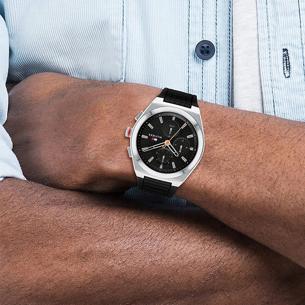 ساعة تومي هيلفيغر Tommy Hilfiger للرجال أصلية موديل (كونور) 1791898 Connor بلون اسود و استيك مطاط (سيليكون) بلون اسود