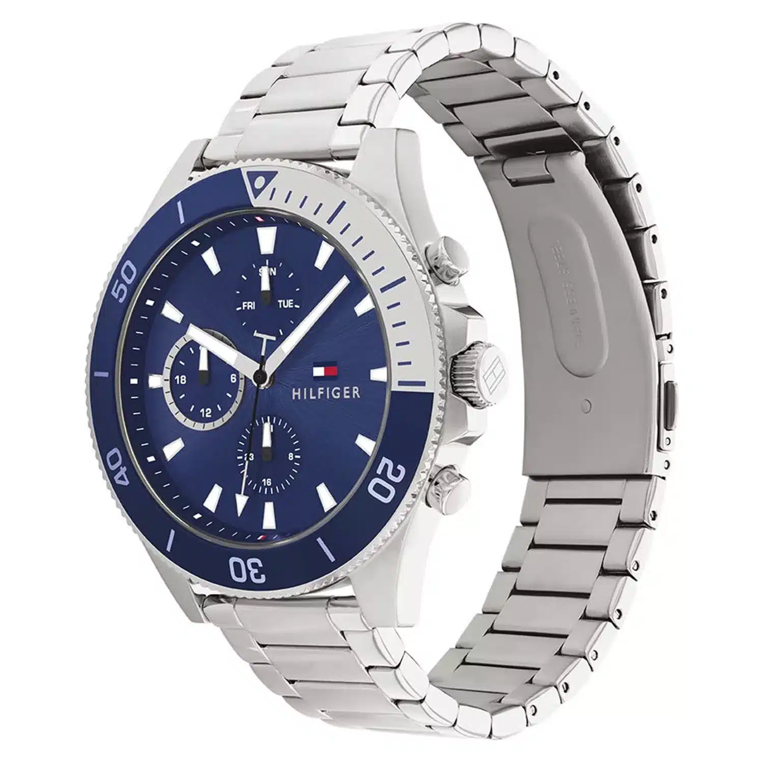 ساعة تومي هيلفيغر للرجال أصلية موديل (لاسون )  LARSON 1791917 بلون ازرق و استيك ستانلس ستيل بلون فضي