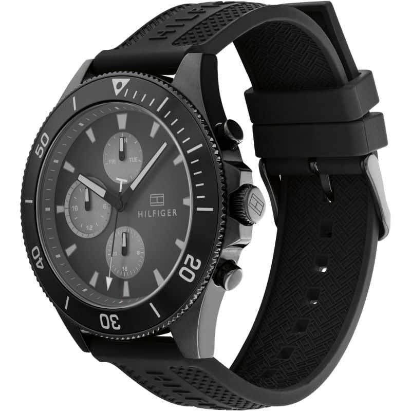 ساعة تومي هيلفيغر للرجال أصلية موديل (لاسون ) LARSON 1791921 لون اسود و استيك سيليكون مطاط لون اسود.