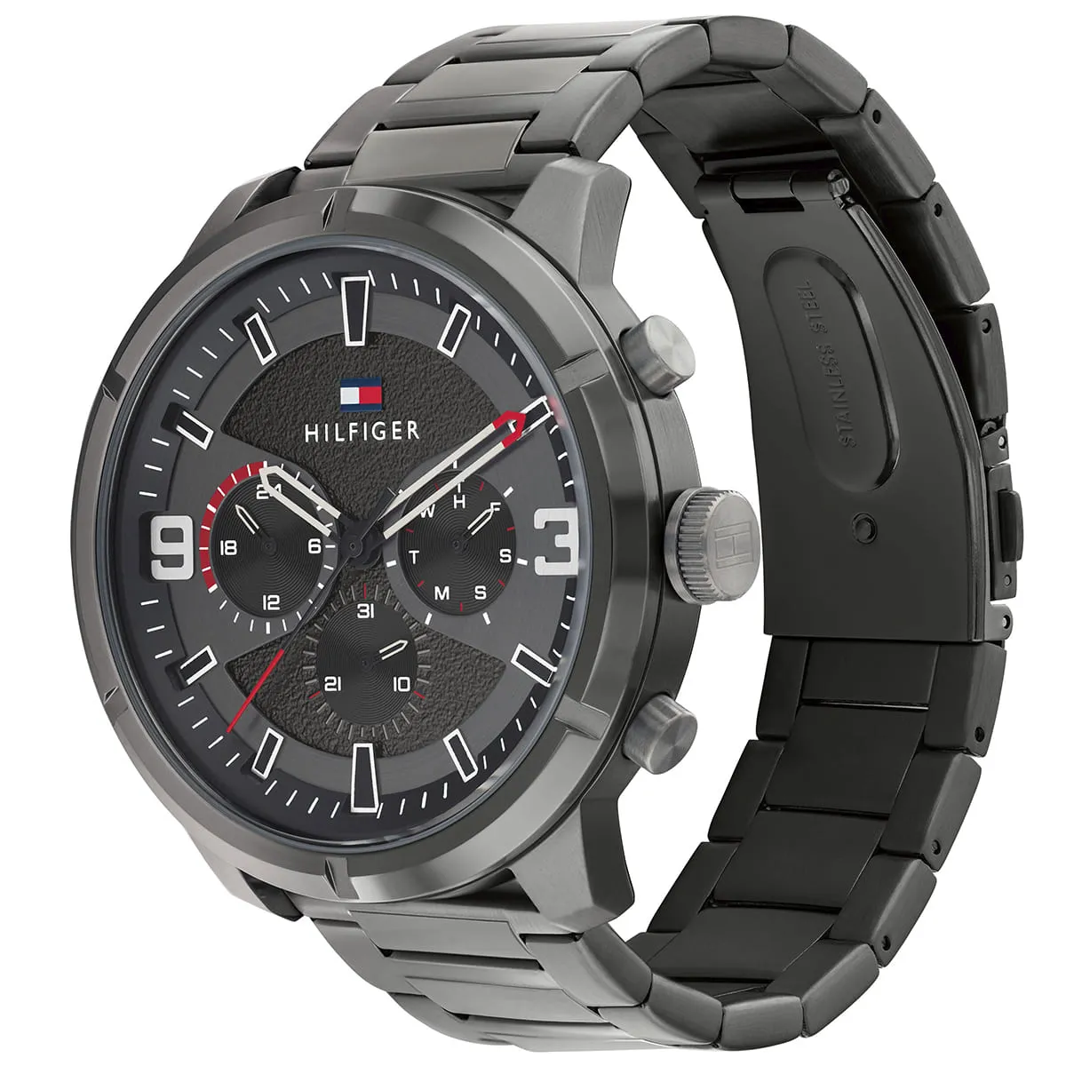 ساعة تومي هيلفيغر Tommy Hilfiger للرجال أصلية موديل 1792071 Wild لون اسود و استيك معدن ستانلس ستيل لون رمادي.