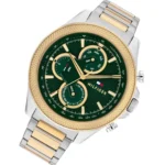 ساعة تومي هيلفيغر للرجال أصلية موديل 1792079 لون اخضر و استيك معدن ستانلس لون فضي * ذهبي.