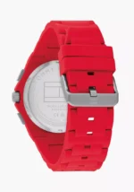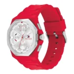ساعة تومي هيلفيغر للرجال أصلية موديل 1792123 لون فضي و استيك سليكون مطاط لون احمر.