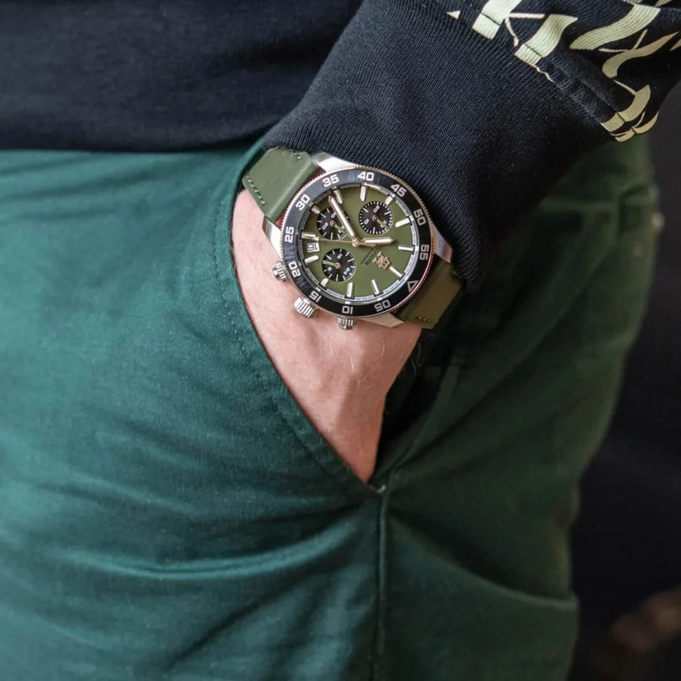 تومي هيلفيغر Tommy Hilfiger للرجال أصلية موديل ( Th85 ) 1792188 لون اخضر و استيك جلد طبيعي لون اخضر.