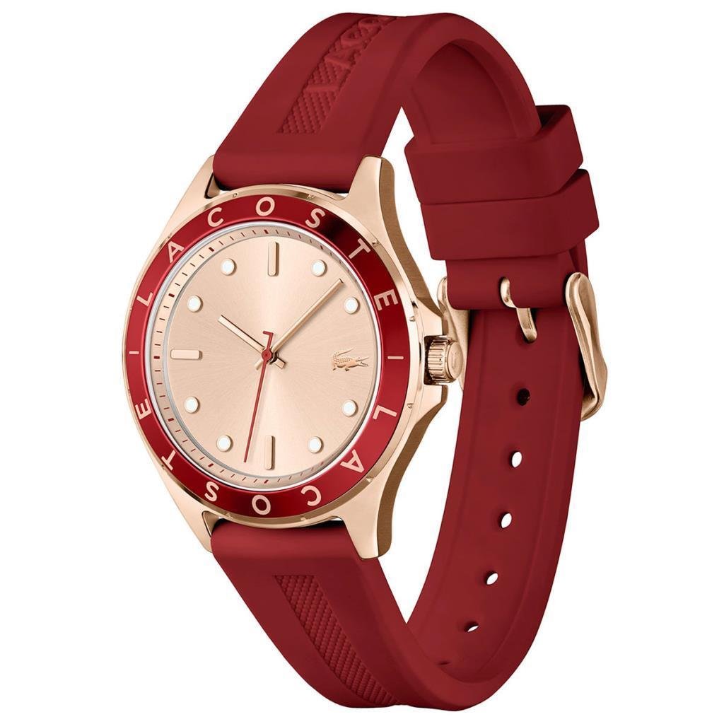 ساعة لاكوست Lacoste للنساء أصلية موديل 2001266 لون روز جولد و استيك سيليكون مطاط لون احمر.