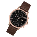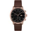 ساعة لاكوست Lacoste للرجال أصلية موديل 2011257 لون اسود و استيك جلد طبيعي لون بني.