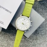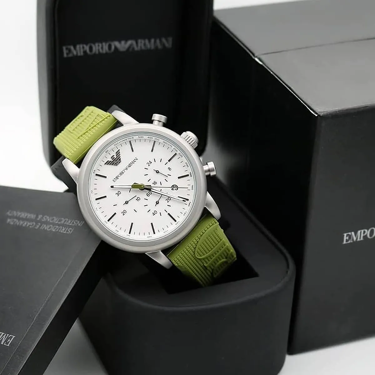 ساعة امبوريو ارماني Emporio Armani للرجال أصلية موديل Luigi XLarge AR11022 لون ابيض و استيك سيليكون مطاط لون اخضر.