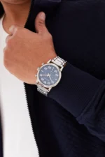 ساعة امبوريو ارماني للرجال أصلية موديل Luigi AR11132 لون ازرق و استيك معدن ستانلس لون فضي.