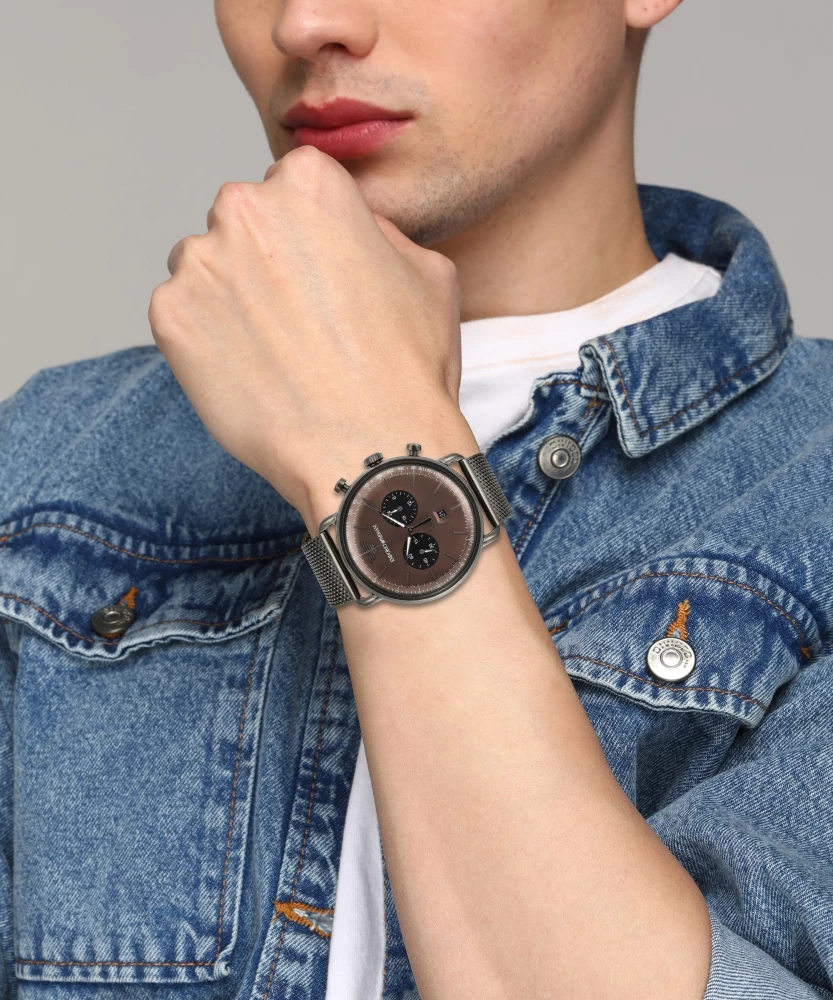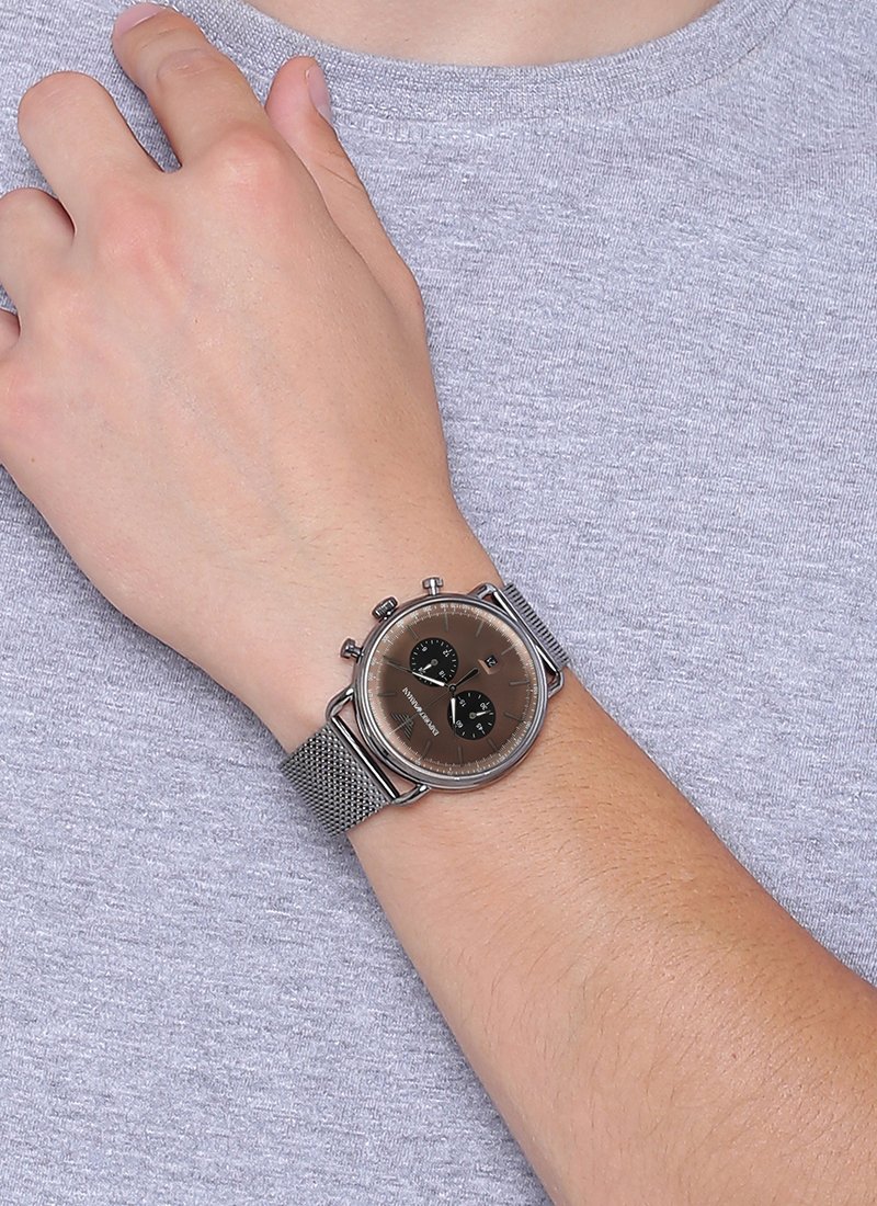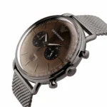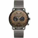 ساعة امبوريو ارماني للرجال اصلية موديل Aviator AR11141 لون بنى واستيك معدن ستانلس لون رمادي.