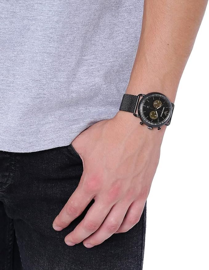 ساعة امبوريو ارماني للرجال اصلية موديل Aviator AR11142 لون اسود واستيك معدن ستانلس لون اسود.