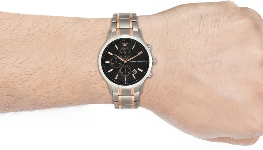 ساعة امبوريو ارماني للرجال اصلية موديل Renato AR11165 لون اسود واستيك معدن ستانلس لون فضي * روز جولد.