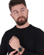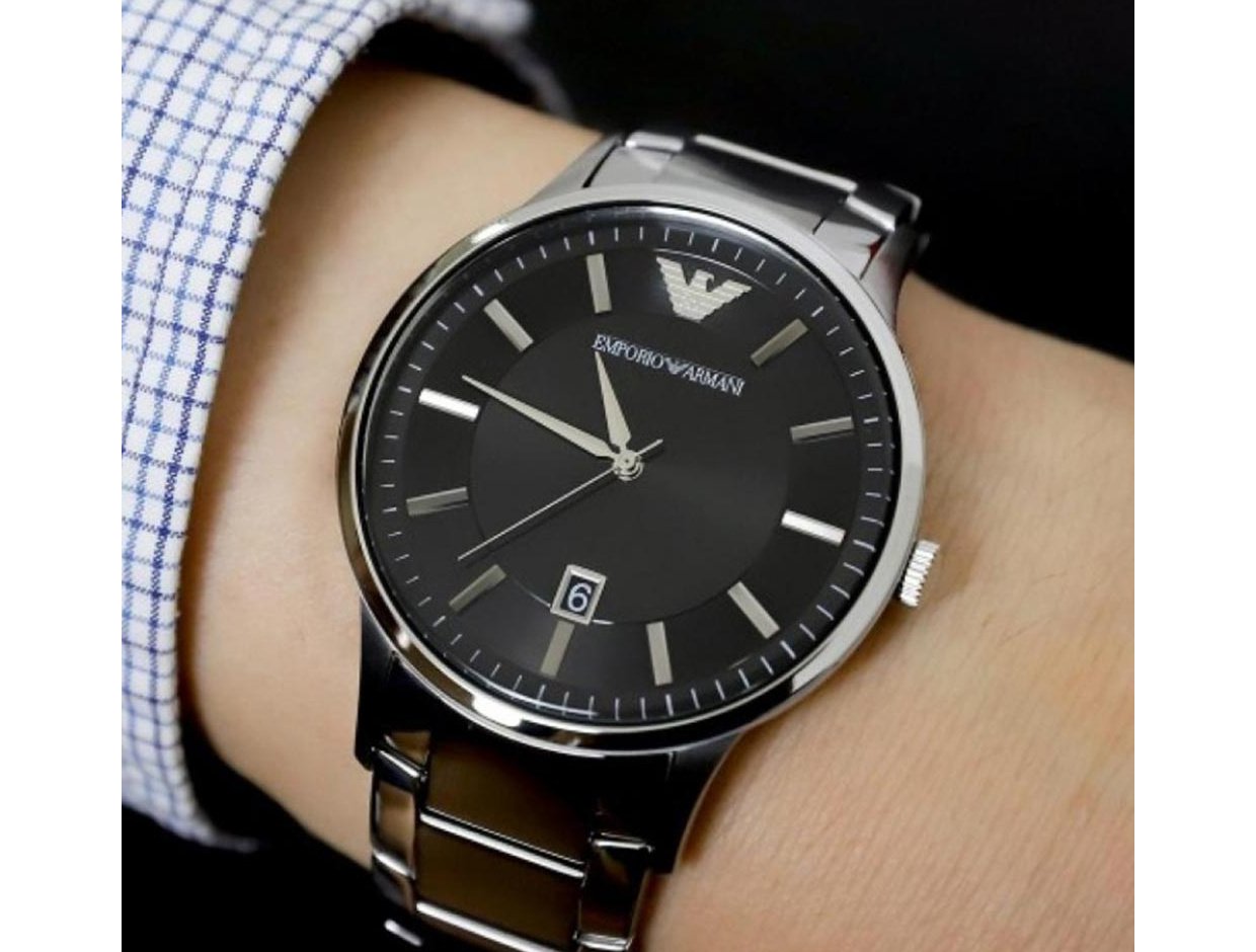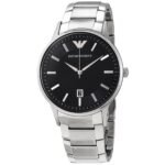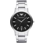 ساعة امبوريو ارماني للرجال أصلية موديل Renato AR11181 لون اسود و استيك معدن ستانلس لون فضي.
