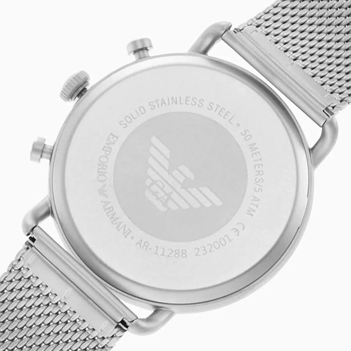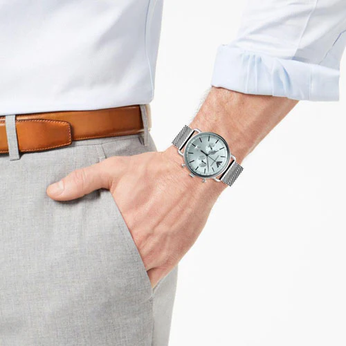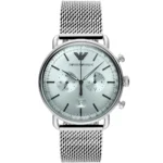 ساعة امبوريو ارماني Emporio Armani للرجال أصلية موديل Aviator AR11288 لون فضي و استيك معدن ستانلس لون فضي.