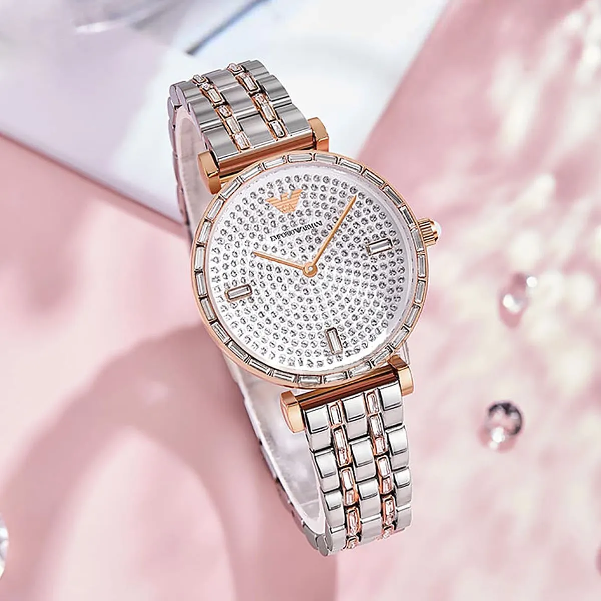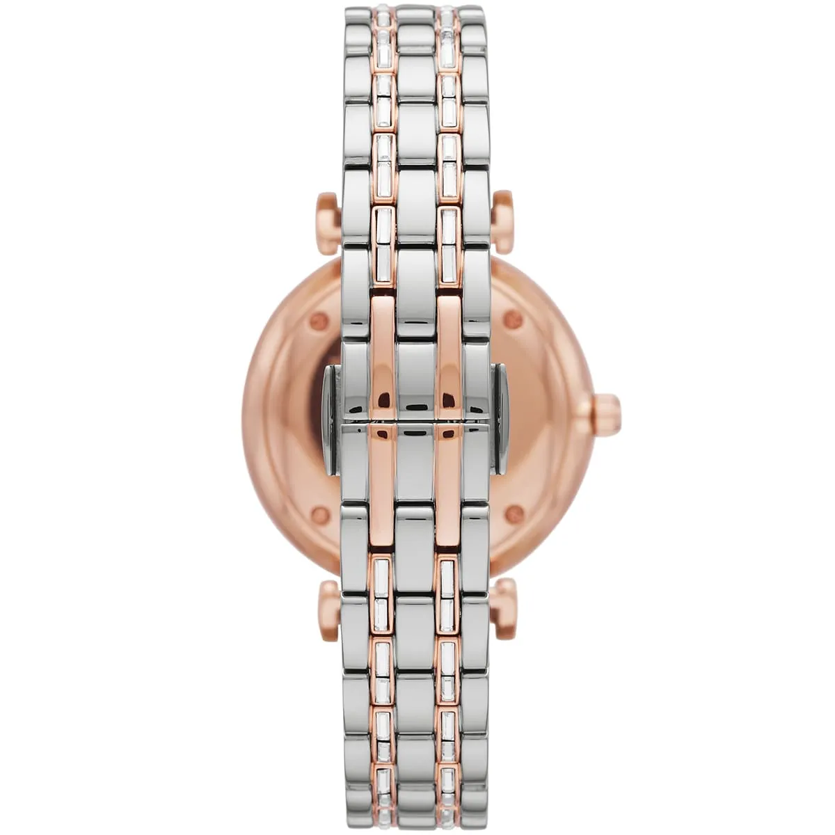 ساعة امبوريو ارماني Emporio Armani للنساء أصلية موديل AR11293 Gianni T-Bar لون فضي و استيك معدن ستانلس لون فضي * روز جولد
