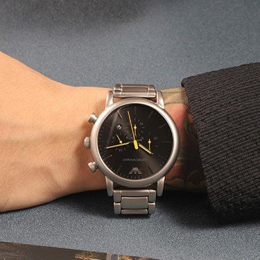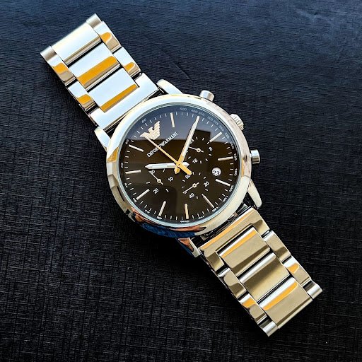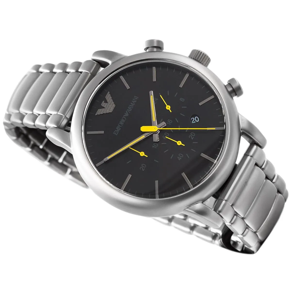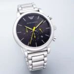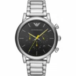 ساعة امبوريو ارماني للرجال أصلية موديل AR11324 لون اسود و استيك معدن ستانلس لون فضي.