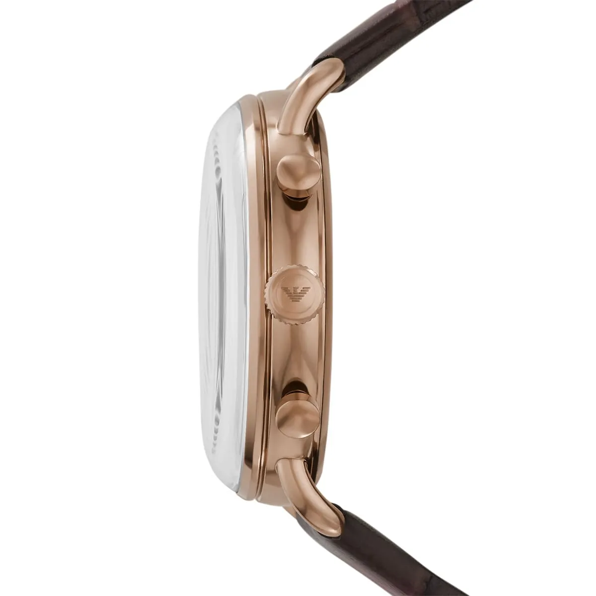 ساعة امبوريو ارماني للرجال اصلية موديل AR11334 لون اخضر واوستيك جلد طبيعي لون بني.