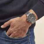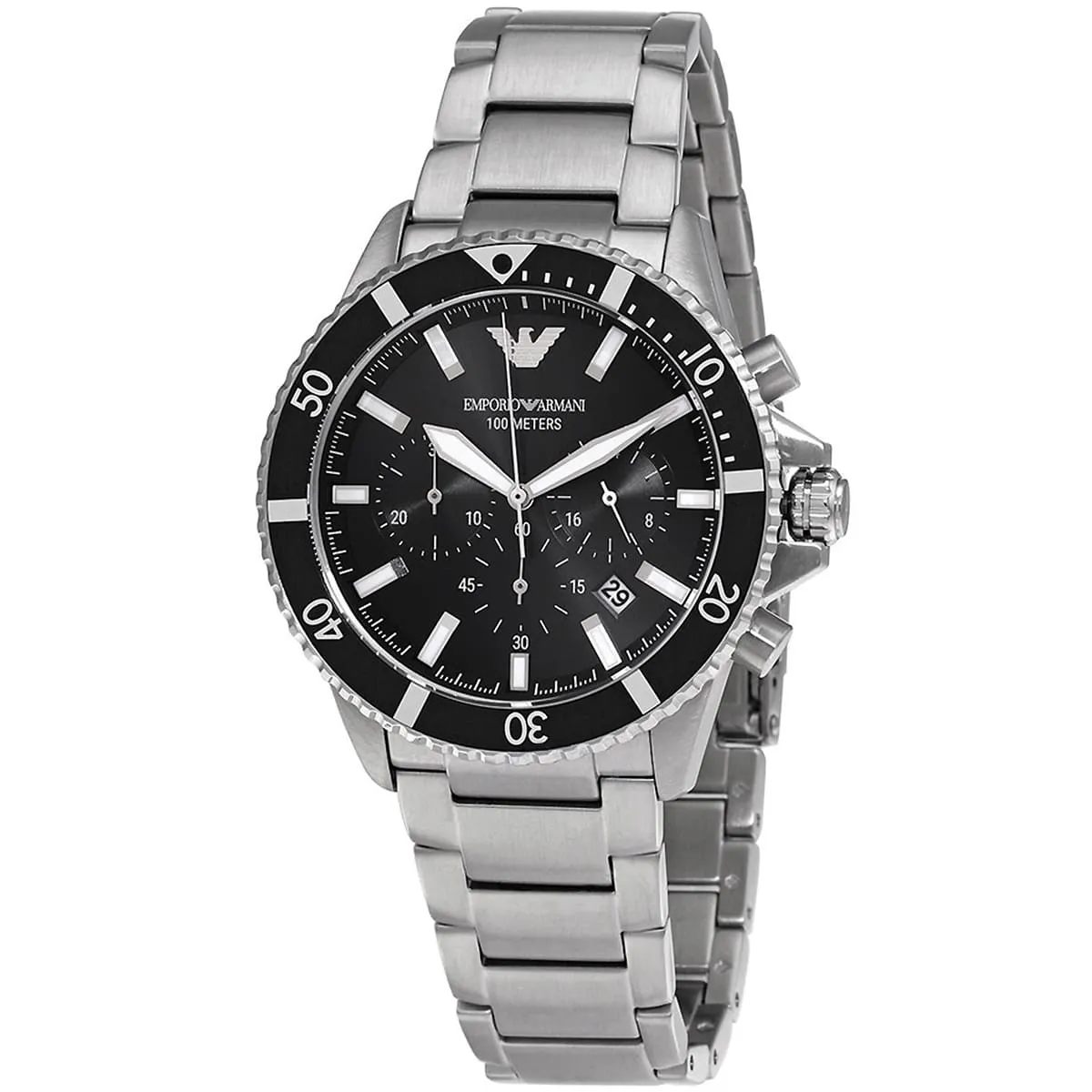 ساعة امبوريو ارماني اصليه للرجال موديل AR11360 لون اسود واوستيك معدن ستانلس لون فضي.