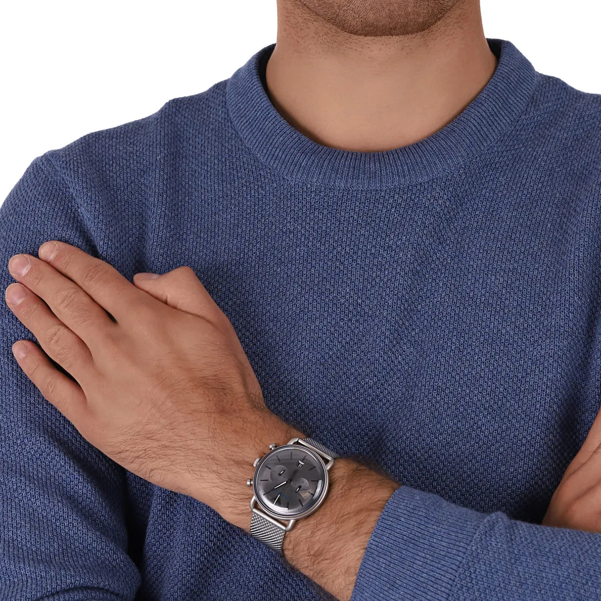 ساعة امبوريو ارماني كرونوغراف Emporio Armani للرجال أصلية موديل Aviator AR11383 لون رمادي و استيك معدن لون فضي.