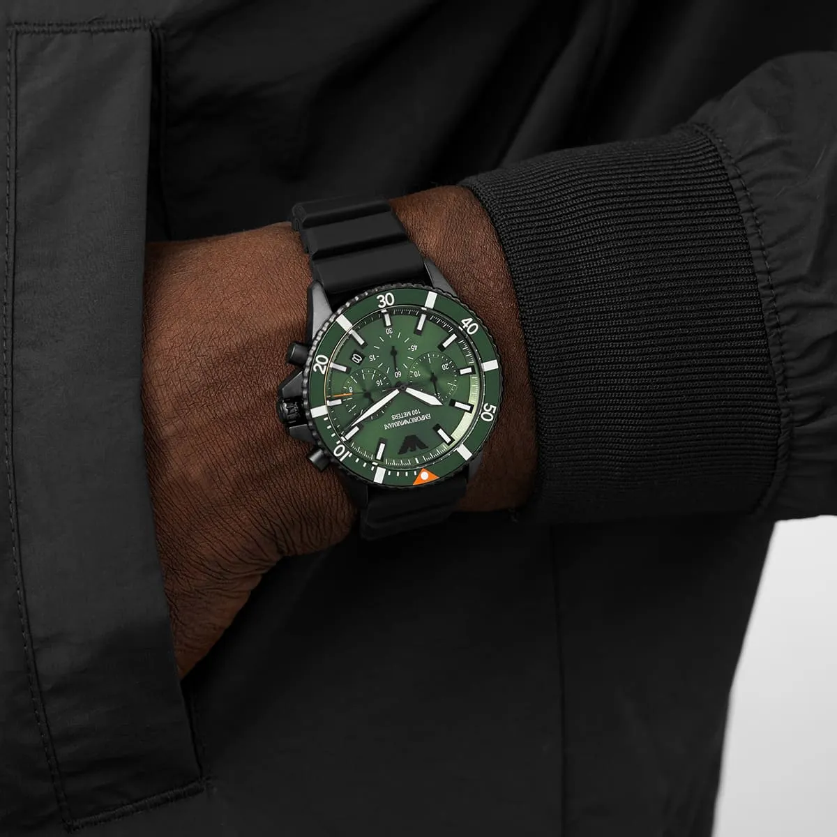 ساعة امبوريو ارماني Emporio Armani للرجال أصلية موديل AR11463 لون اخضر و استيك سيليكون مطاط لون اسود.