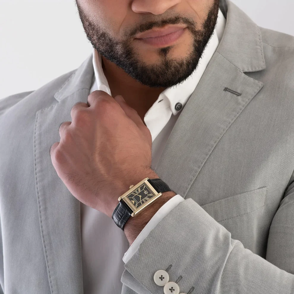 ساعة امبوريو ارماني Emporio Armani للرجال أصلية موديل Gino AR11666 لون اسود و استيك جلد طبيعي لون اسود.