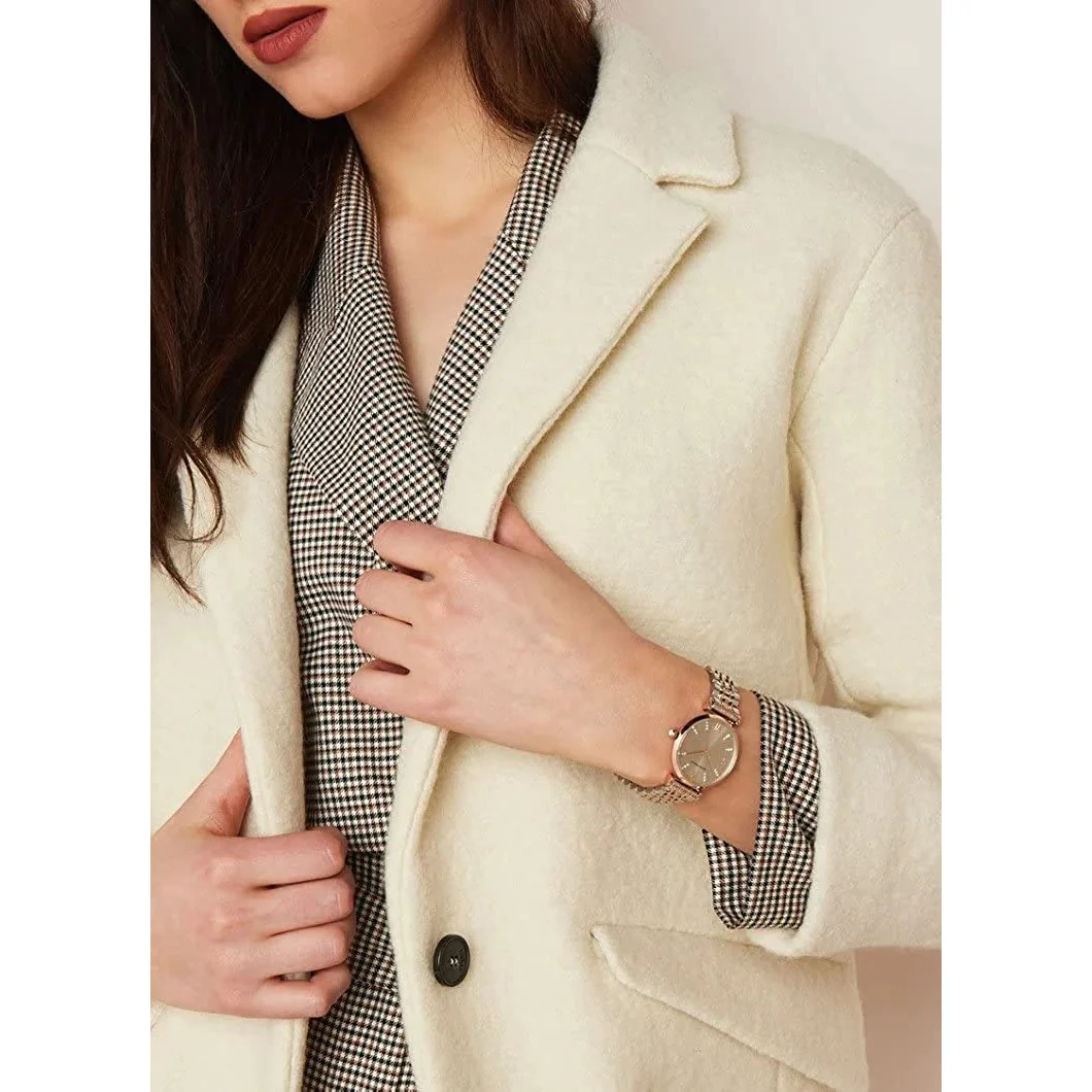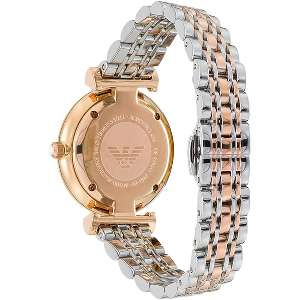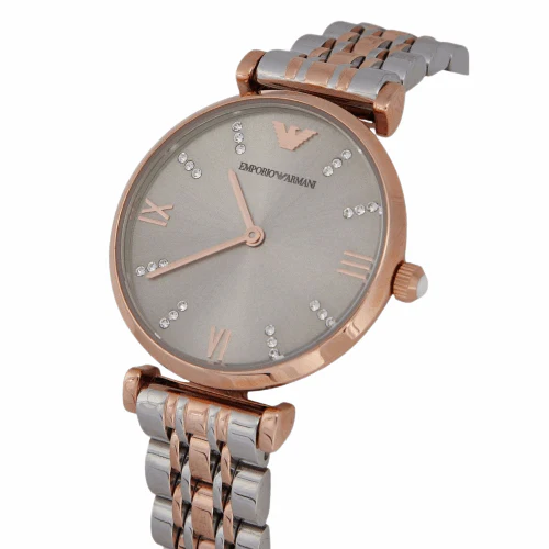 ساعة امبوريو ارماني للنساء اصلية موديل Gianni T-Bar AR1840 لون رمادي واستيك معدن ستانلس لون فضي * روز جولد.