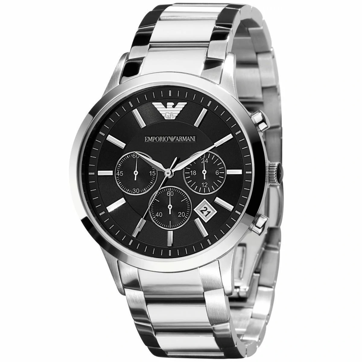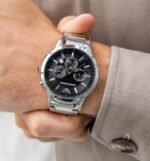 ساعة امبوريو ارماني للرجال اصلية موديل Renato AR2434 لون اسود واستيك معدن ستانلس لون فضي.