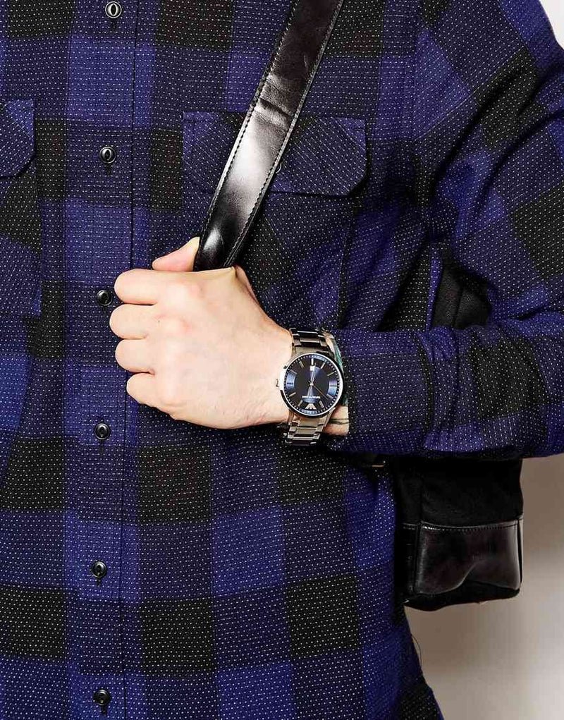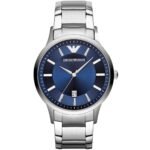 ساعة امبوريو ارماني للرجال اصلية موديل Renato AR2477 لون ازرق واستيك معدن ستانلس لون فضي.