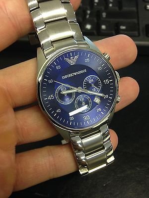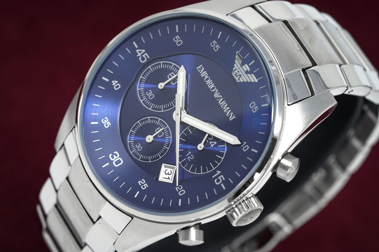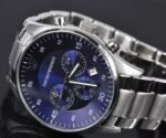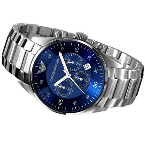 ساعة امبوريو ارماني للرجال أصلية موديل (ريترو) Retro AR5860 لون ازرق و استيك معدن ستانلس لون فضي.