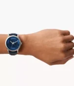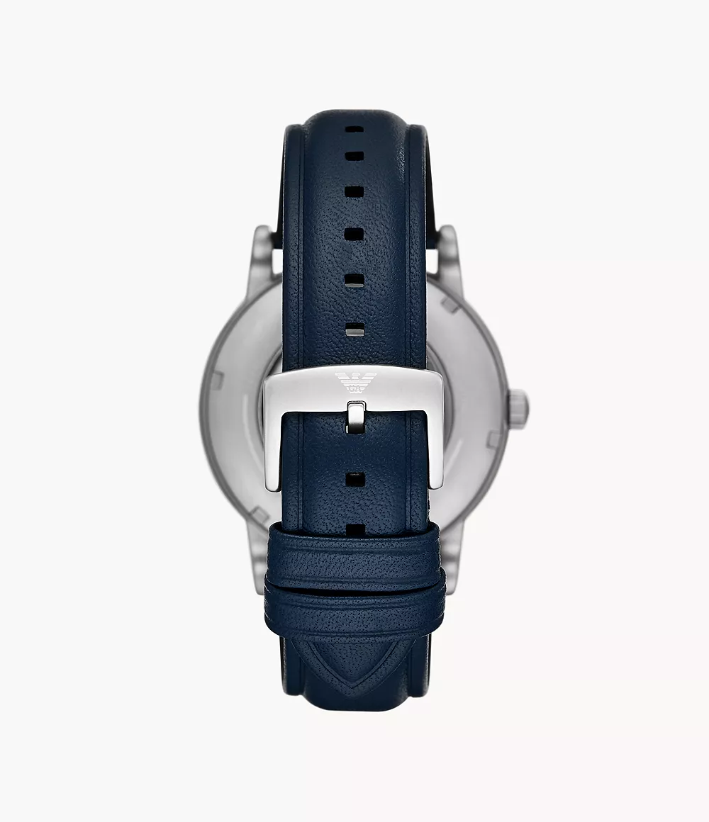 ساعة امبوريو ارماني اصلية للرجال موديل AR60030 بلون ازرق واوستيك جلد طبيعي بلون ازرق.