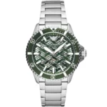 ساعة امبوريو ارماني Emporio Armani للرجال أصلية موديل AR60061 لون اخضر و استيك معدن ستانلس لون فضي.