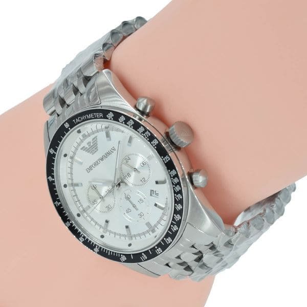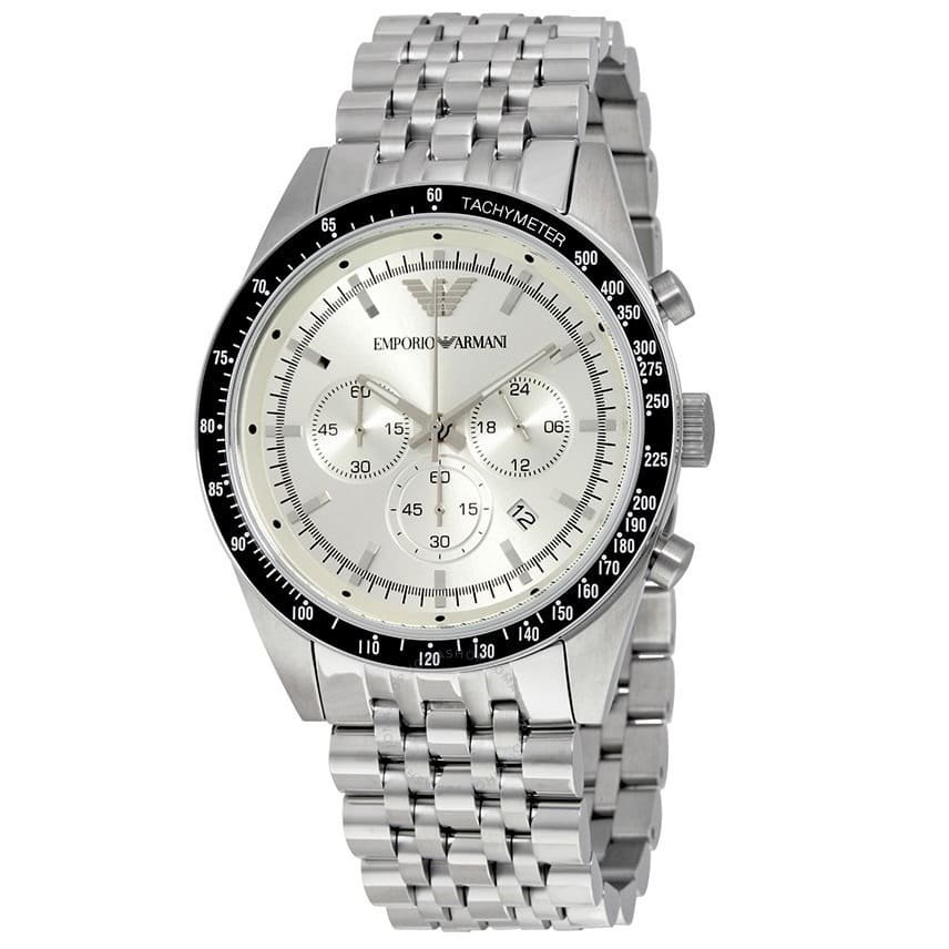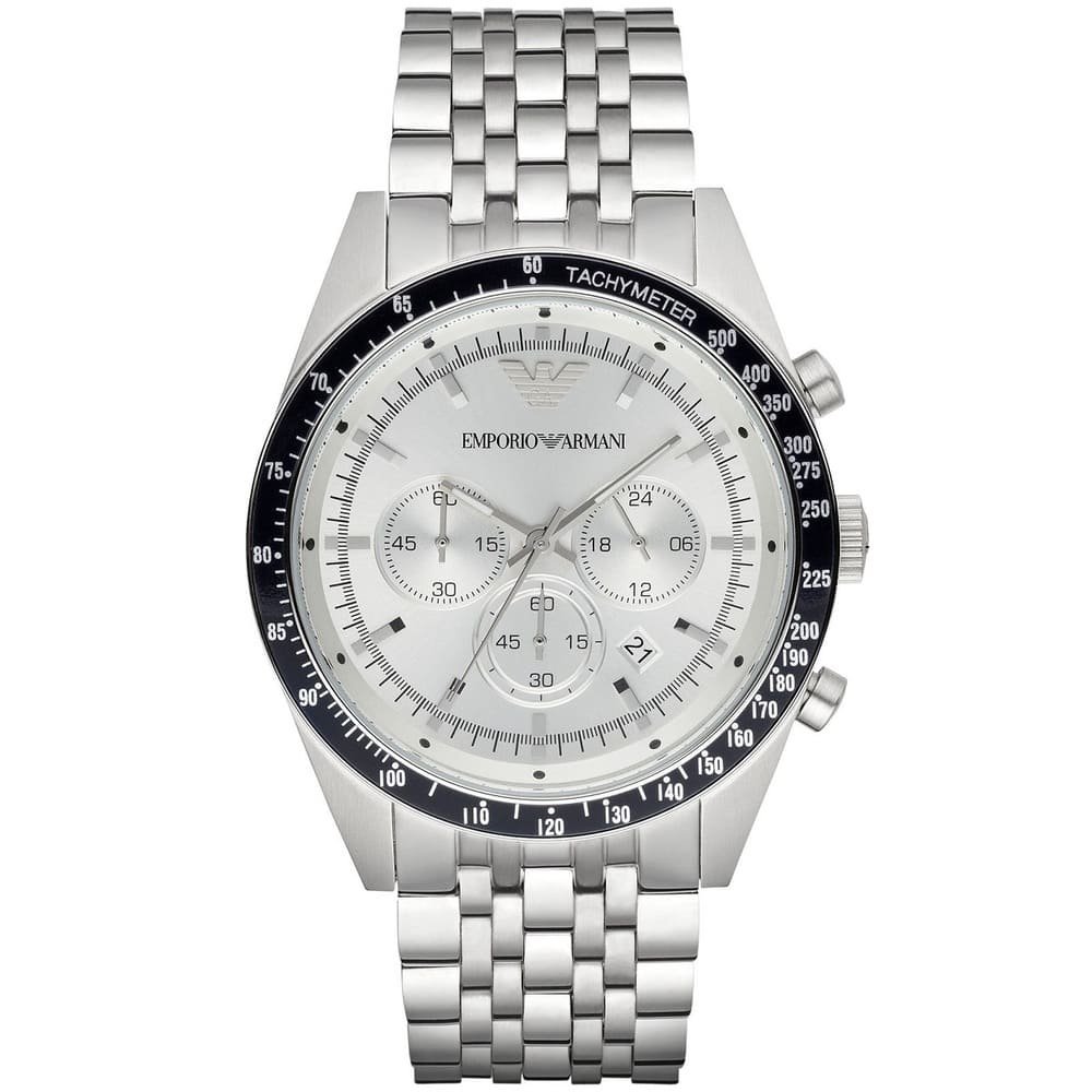ساعة امبوريو ارماني للرجال اصلية موديل Tazio AR6073 لون فضي واستيك معدن ستانلس لون فضى.