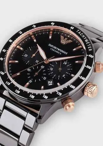 ساعة امبوريو ارماني للرجال أصلية موديل Mario AR70002 لون اسود و استيك سيراميك لون اسود.
