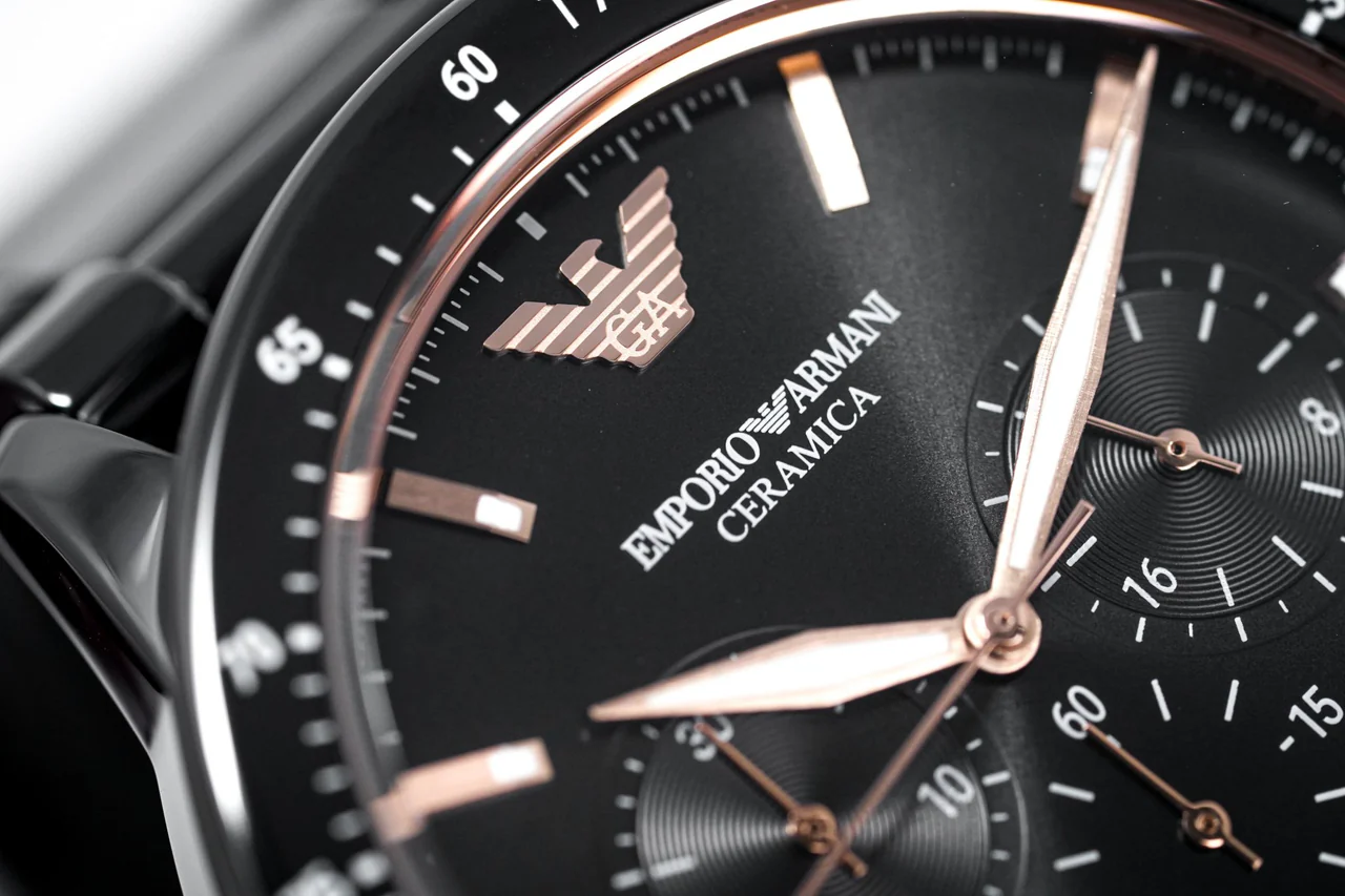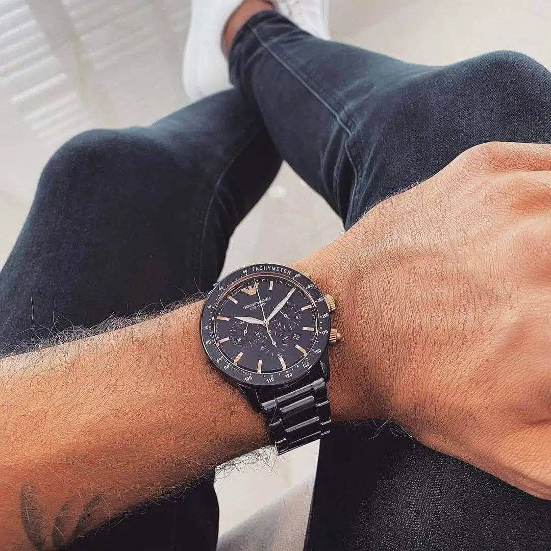 ساعة امبوريو ارماني للرجال أصلية موديل Mario AR70002 لون اسود و استيك سيراميك لون اسود.