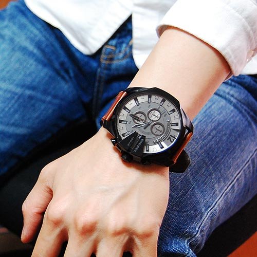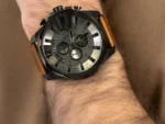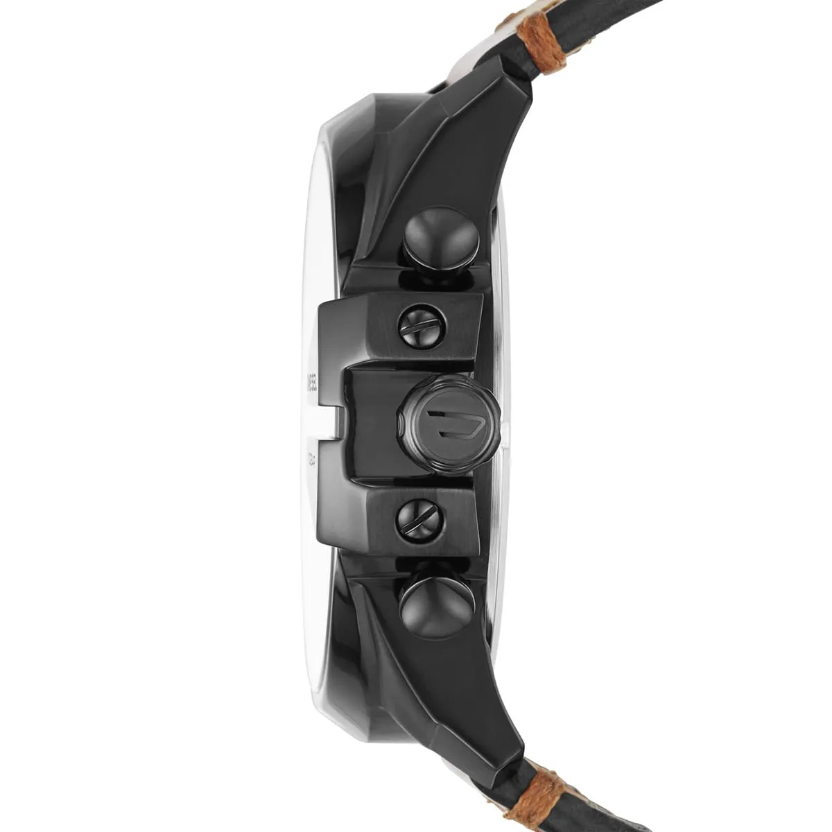 ساعة ديزل Diesel للرجال أصلية موديل Mega Chief DZ4463 لون اسود و استيك جلد طبيعي لون بني.