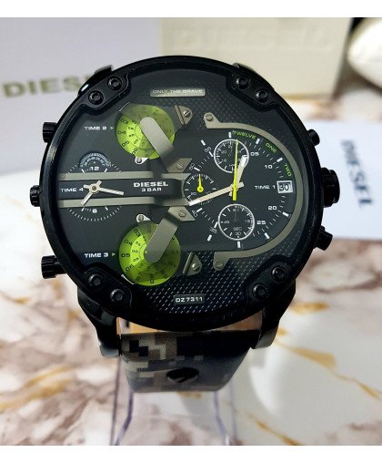 ساعة ديزل للرجال اصلية موديل (مستر دادي 2.0) Mr. Daddy 2.0 DZ7311 لون اسود واستيك جلد طبيعي لون اسود.
