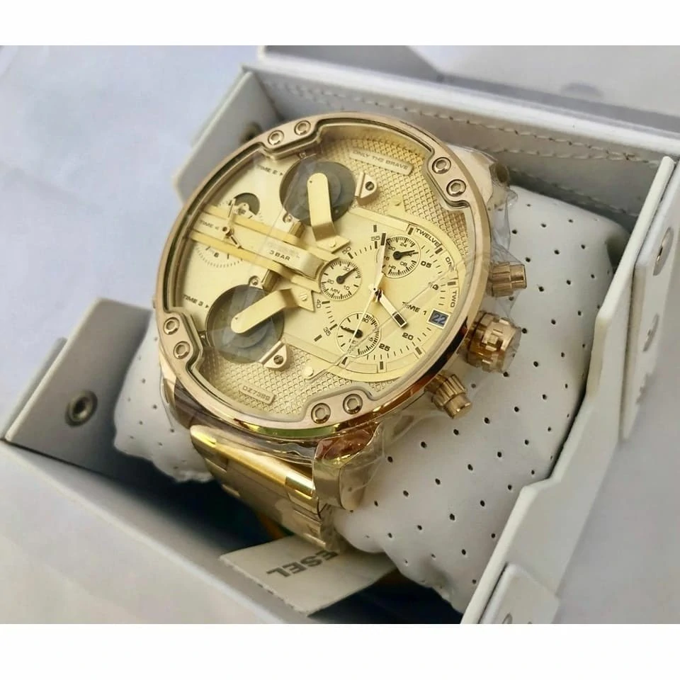 ساعة ديزل للرجال اصلية موديل (مستر دادي 2.0) Mr. Daddy 2.0 DZ7399 بلون ذهبي واستيك لون ذهبي.