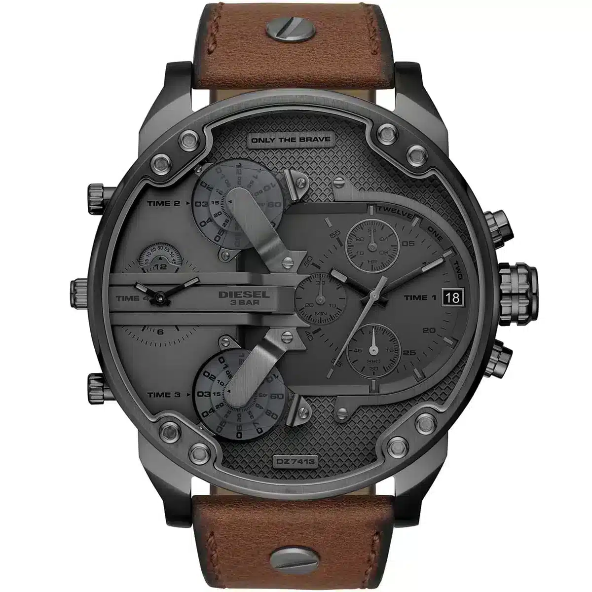 ساعة ديزل Diesel للرجال أصلية موديل (مستر دادي 2.0) DZ7413 Mr Daddy 2.0 لون رمادي و اوستيك جلد طبيعي لون بني.