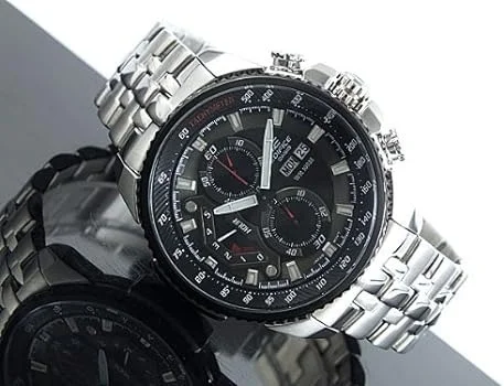 ساعة كاسيو اديفيس Casio Edifice للرجال Mirror Original موديل EF-558D-1AV لون أسود و استيك معدن ستانلس لون فضي.