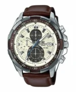 ساعة كاسيو اديفيس للرجال (ميرور اوريجنال) EFR-539L-7BV لون اوف وايت واستيك جلد طبيعي لون بني.