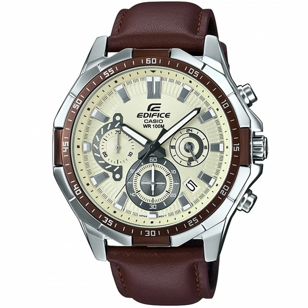 ساعة كاسيو اديفيس للرجال (ميرور اوريجينال) EFR-554L-7AV لون ابيض واستيك جلد طبيعي لون بني.