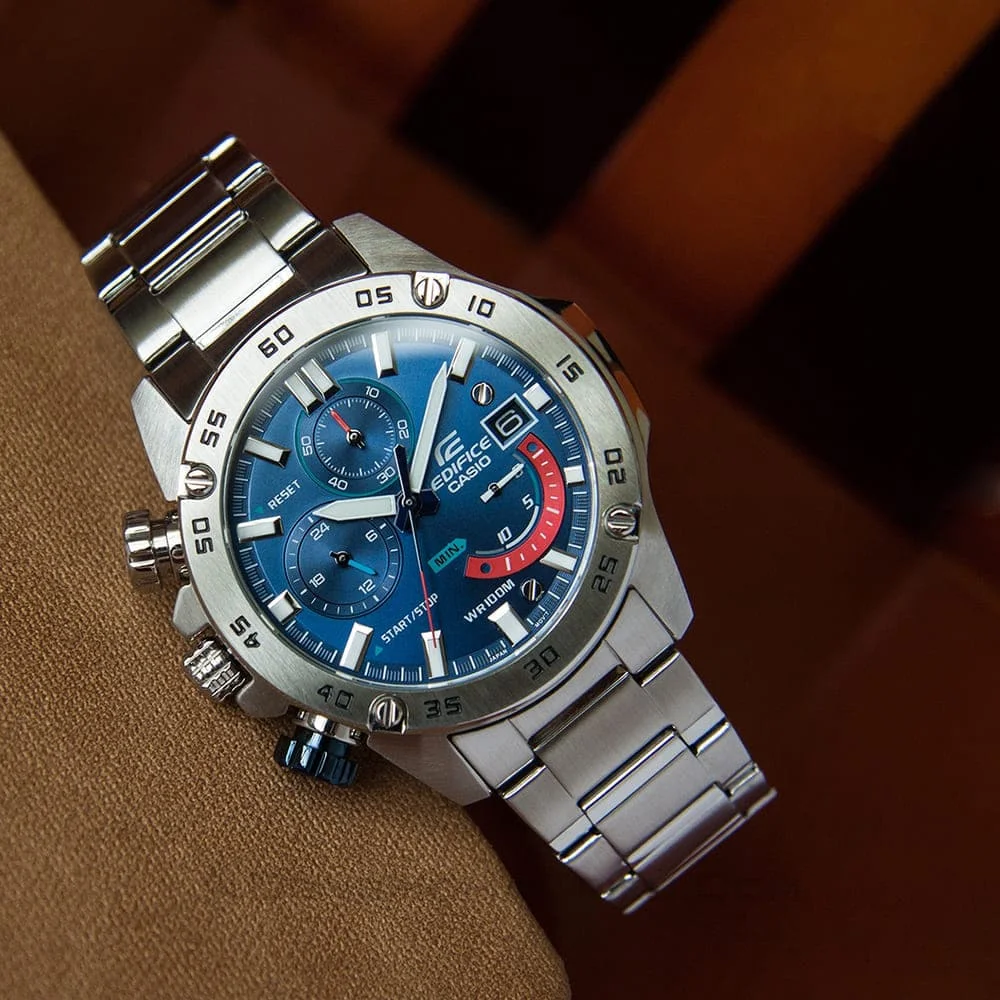 ساعة كاسيو اديفيس Casio Edifice للرجال Mirror Original موديل EFR-558D-2AV لون أزرق و استيك معدن ستانلس لون فضي.