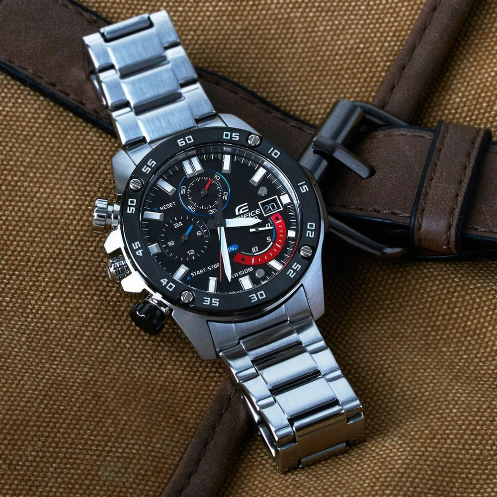 ساعة كاسيو اديفيس للرجال (ميرور اوريجينال) EFR-558DB-1AVUEF لون اسود واستيك معدن ستانلس لون فضي.