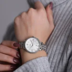 ساعة فوسيل Fossil للنساء اصلية موديل ES3545 لون ابيض واستيك معدن ستانلس لون فضي.