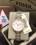 ساعة فوسيل للنساء اصلية موديل Jacqueline ES3634 لون ابيض واستيك معدن ستانلس لون فضي * روز جولد.