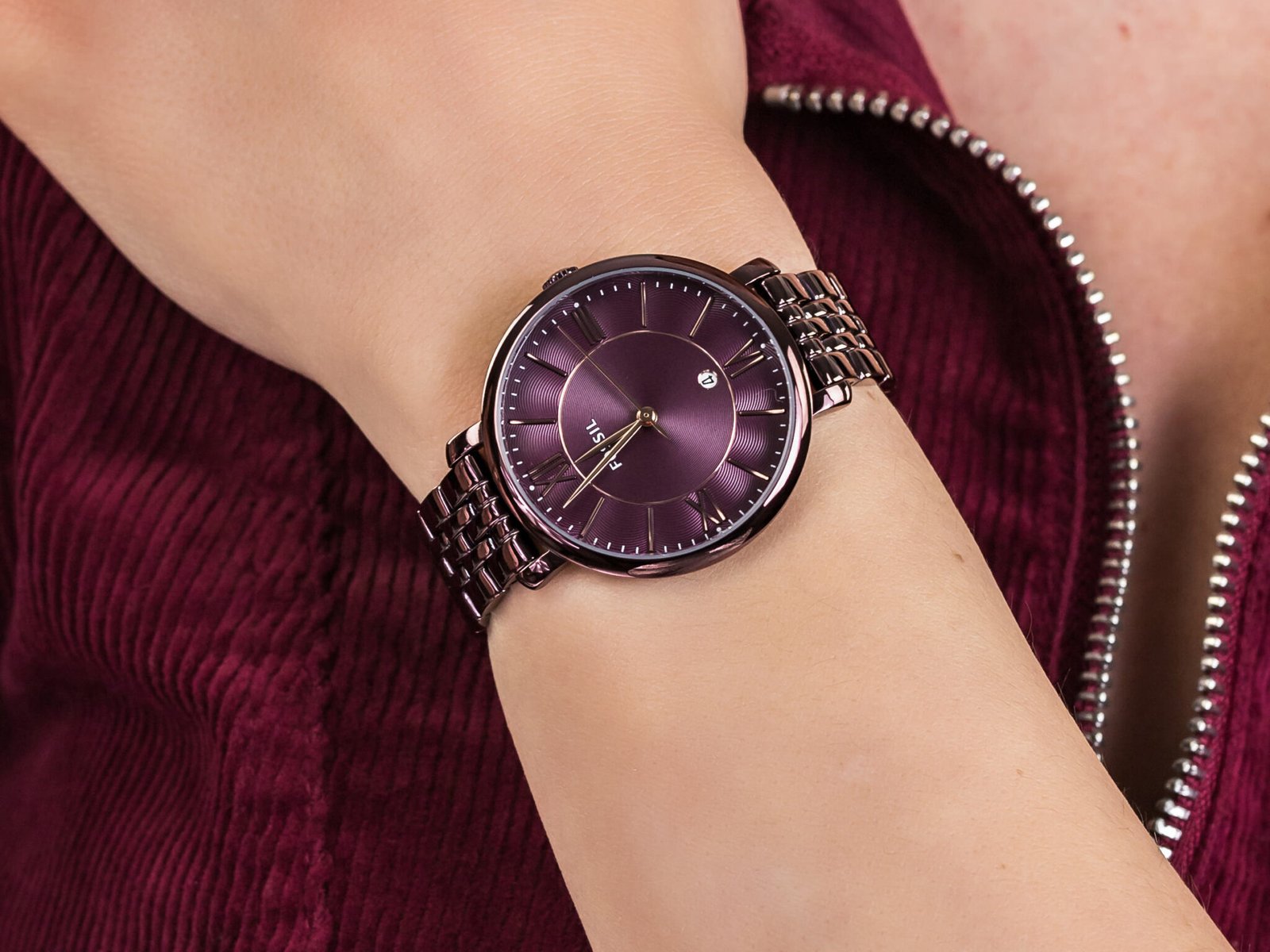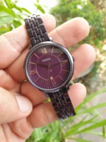 ساعة فوسيل للنساء اصلية موديل ES4100 لون احمر داكن واستيك معدن ستانلس لون احمر داكن.