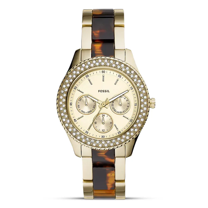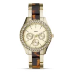 ساعة فوسيل للنساء اصلية موديل ES4756 لون ذهبي واستيك معدن ستانلس لون ذهبي * بني.